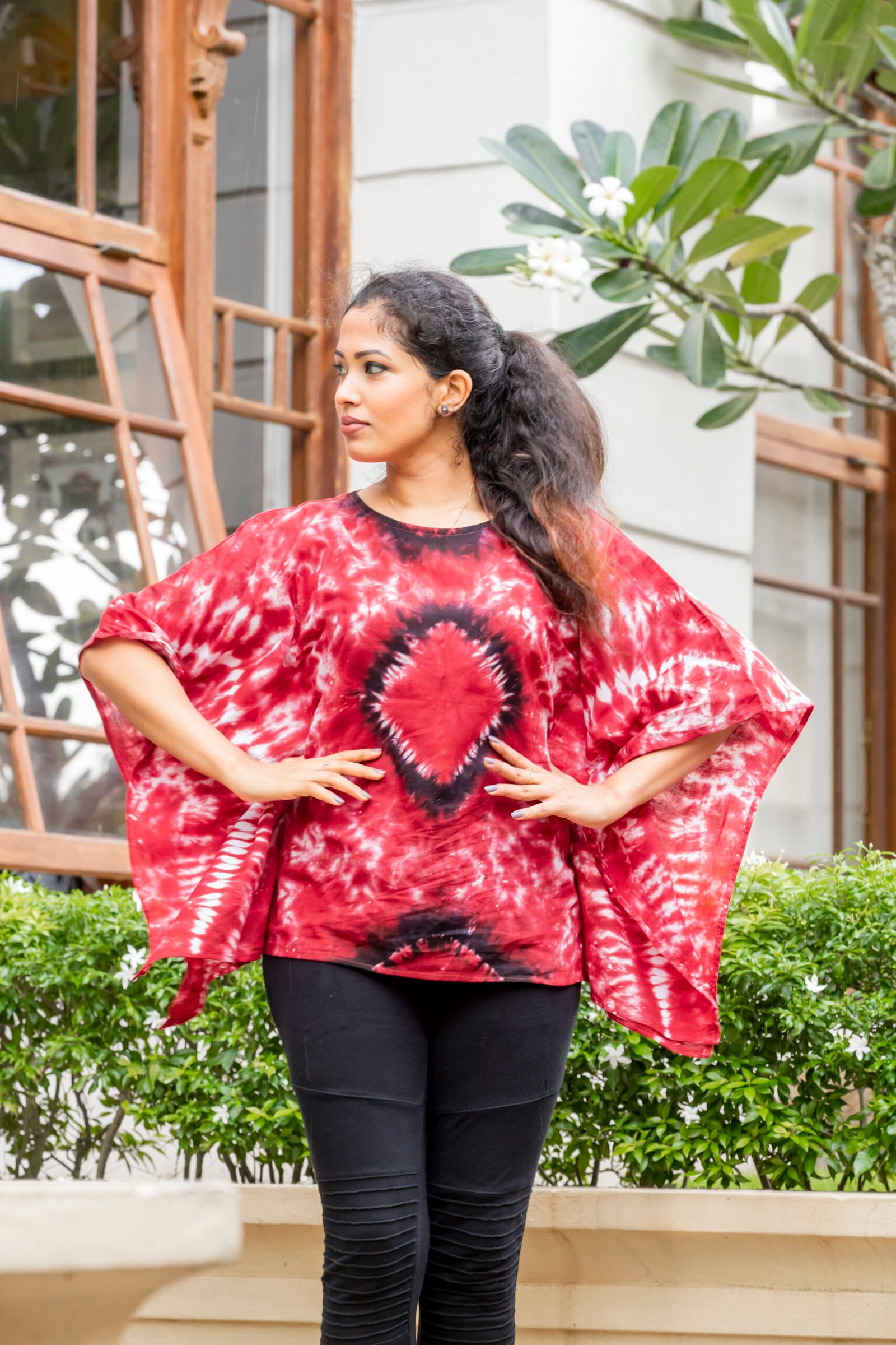 Raise your arms and measure around the fullest part of your bust, keeping the measuring tape parallel to the floor.